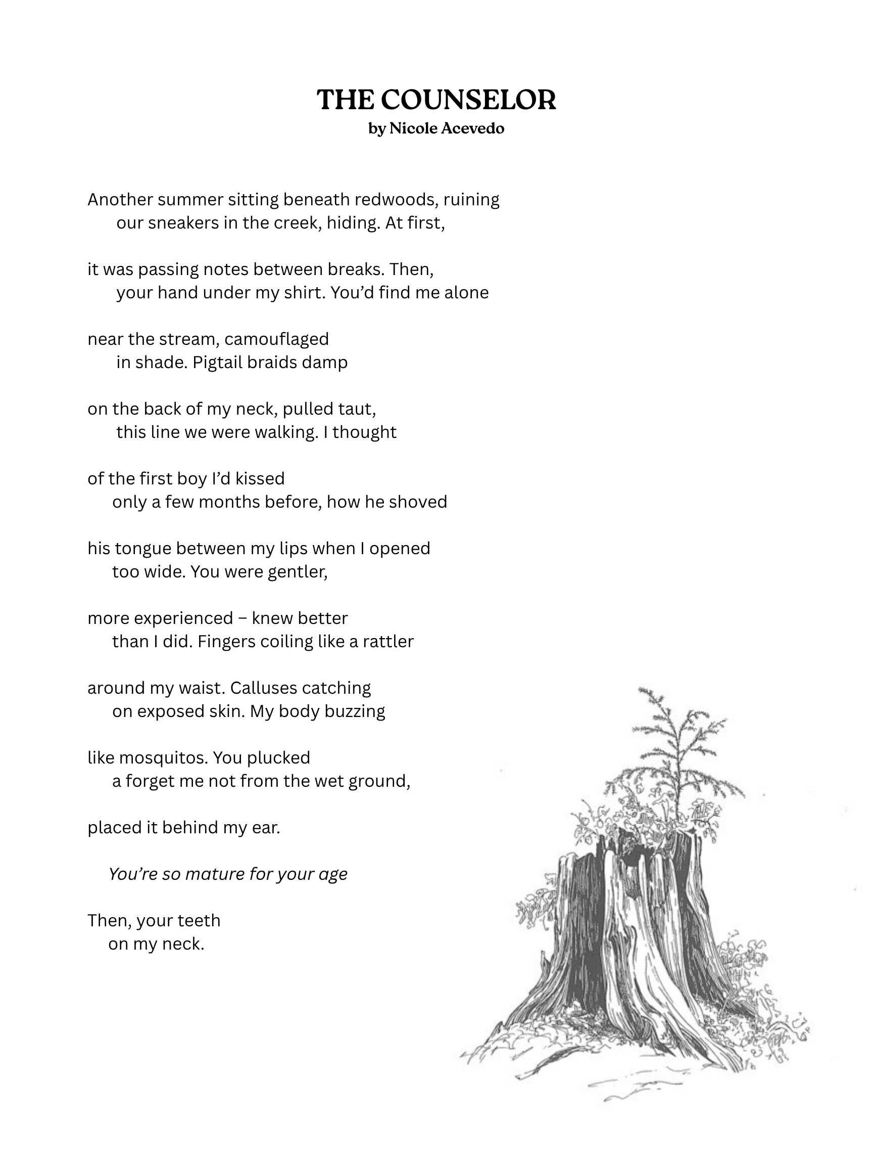 Listen to Nicole read “The counselor” and “EXHIBITION” below.